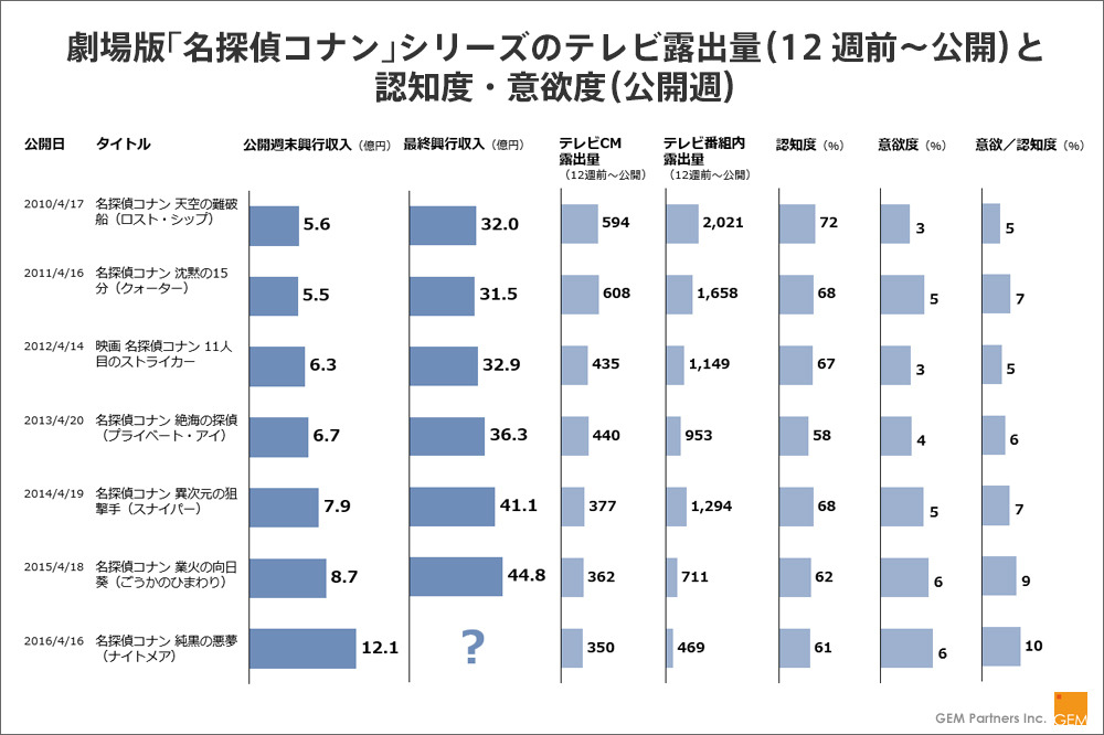 補足データ:過去の興行収入の推移とテレビ宣伝露出量と認知、意欲の推移を整理
