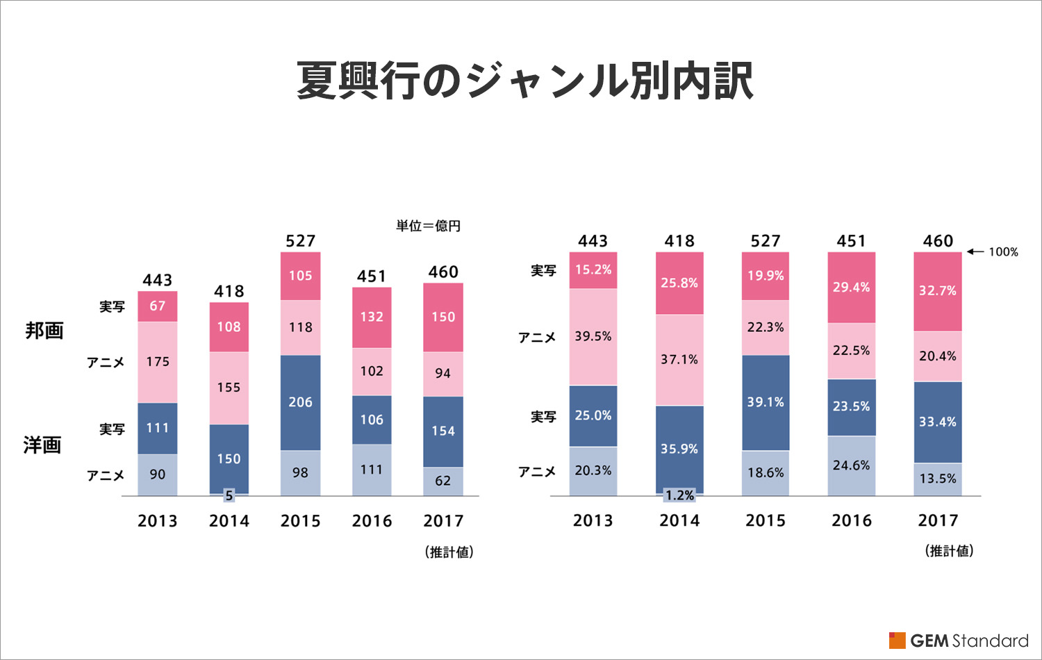 ※集計作品の抽出条件は、各年の7月から8月中旬(7月最初の週末から数えて8週目の土日までの間)までの間に公開された映画かつ100スクリーン以上で公開された(される見込み)のもの
