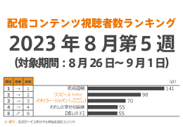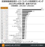 定額制動画配信サービス 週間リーチptランキングTOP20【最新週】
