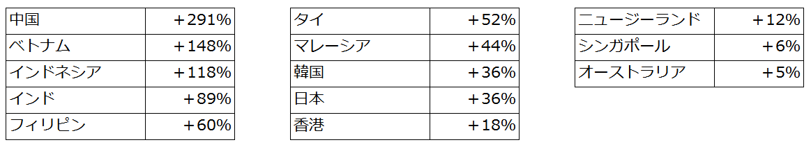 APAC(アジア太平洋) 前年比7.54ドル増 15%増
