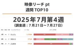 定額制動画配信サービス 週間リーチptランキングTOP20【最新週】