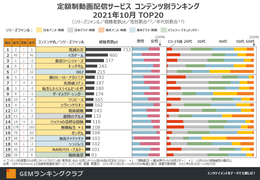 | 【順位変動】↑:10以上の上昇、↗:1~9の上昇、↘:1~9の下降、↓:10以上の下降、→:変動なし 出典:GEM Partnersによる定額制動画配信サービス コンテンツ別 調査(掲載ptは小数点第1で四捨五入) 実査日:2021年8月21日 調査対象期間:2021年8月14日~8月20日 ![]() |