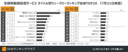 定額制動画配信サービス 週間リーチptランキングTOP20【最新週】