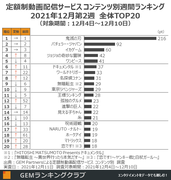 | 順位 | 変動 | 前回 | 作品別 視聴者数pt(橙字:定額制動画配信サービス オリジナル作品) | pt前週差 | ||||||||||||||||||||||||||||||||||||||||