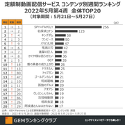 定額制動画配信サービス 週間リーチptランキングTOP20【最新週】