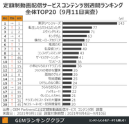 定額制動画配信サービス 週間リーチptランキングTOP20【最新週】