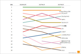• 定額制動画配信サービス 週間リーチptランキングTOP20【最新週】