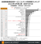定額制動画配信サービス 週間リーチptランキングTOP20【最新週】