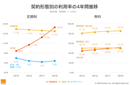 定額制動画配信サービス(SVOD)の利用率は停滞も緩やかな上...